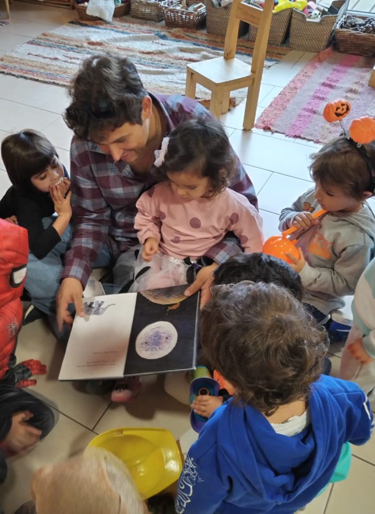 Las familias colaboran y trabajan de forma conjunta en el cuidado de la escuela; muchos encuentros, celebraciones, paseos por la naturaleza, salidas a la ciudad al teatro de calle, a conciertos…